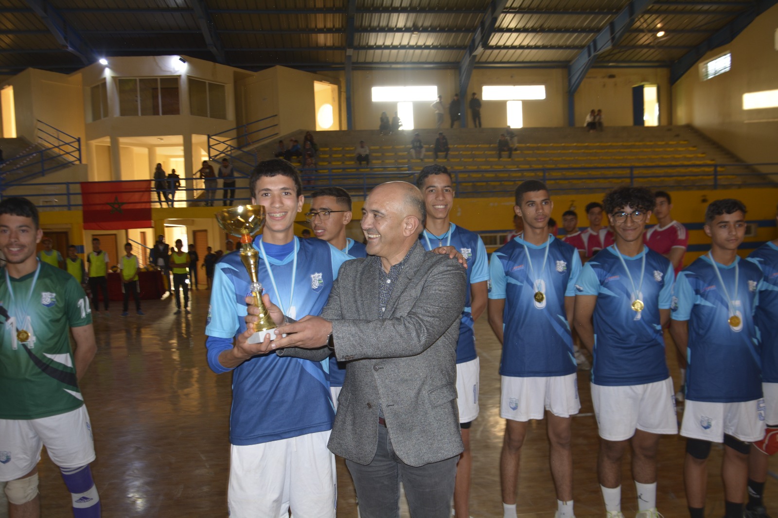 نظمت جمعية نادي اطلس الريش لكرة الطائرة مباراة نهائية للدوري الرمضاني للكرة الطائرة بين فريق “كرنديس” من ثانوية مولاي علي الشريف و أطلس الريش مساء الاحد 21 ماي 2023 على الساعة الخامسة ، بحضور السيد قائد الملحقة الإدارية “فوتيس” بالريش والسيد المدير الإقليمي لوزارة التربية الوطنية والتعليم الاولي والرياضة بميدلت ،السيد رئيس المجلس الإقليمي والبرلماني مولاي رشيد الطيبي، والسيد رئيس الجماعة الترابية وعدد من المستشارين الإقليمين والجماعيين، رئيس عصبة درعة تافيلالت وعضو الجامعة الملكية لكرة الطائرة، رؤساء المؤسسات التعليمية بالريش،استاذة التربية البدنية ،أعضاء جمعية اطلس الريش لكرة الطائرة وعدد من الفاعليات الرياضية وسائل الاعلام المحلية والوطنية. حيث انتهت المقابلة بفوز فريق أطلس الريش لكرة الطائرة على فريق كرنديس ب 2 مقابل 1.كما تم تكريم عدد من الرياضين المتألقين وطنيا ودليا. كل ذلك تشجيعا للرياضة والشباب بالريش الشكر موصول لكل المساهمين في إنجاح هذا الحدث.