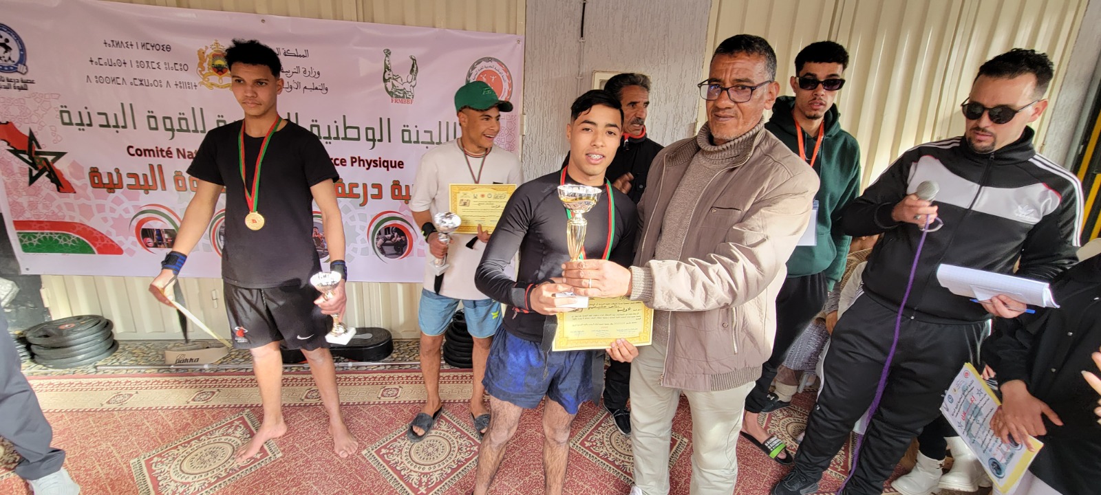 عرفت عصبة درعة تافيلالت للقوة البدنية تنظيم ، بطولة الجهة للقوة البدنية والدفع على الصدر، وذلك بمقر جمعية سعيد لبناء الجسم والفتنيس بحي تاحميدانت مدينة الريش وذلك يوم الاحد 31 دجنبر 2023 على الساعة الثالثة زولا. وقد شارك هذه التظاهرة العديد من الأبطال من مختلف مناطق درعة تافيلالت بحضور شخصيات رياضية وازنة : السيد ايت اوعالي ادريس رئيس عصبة درعة تافيلالت للقوة البدنية والسيد خليد لبريكي رئيس العصبة لبناء الجسم والفتنيس وكل من المدرب سعيد حسيكو، و مبارك حجوج.و البطلة التاقي هشومة، وعدة شخصيات اخرى. التنظيم الجيد والتحكيم الرياضي الرفيع بحضور أطر ورؤساء العصبة ، فضلا عن عروض ممتعة في فن الجمباز من جمعية ابطال السلام الذين أبدعوا لمسات و حركات استعارضية نالت استحسان وإعجاب الحاضرين. هذا وقد تم تتويج الأبطال الفائزين بعدةميداليات و جوائز تقديرية، كما عرفت التظاهرة تألق البطل حميد مسعاف في الحمل، من جمعية سعيد محققا المرتبة الاولى لوزن 110 kg . كما احتل المرتبة الاولى البطل حميد بايبي في رياضة الفتنيس.