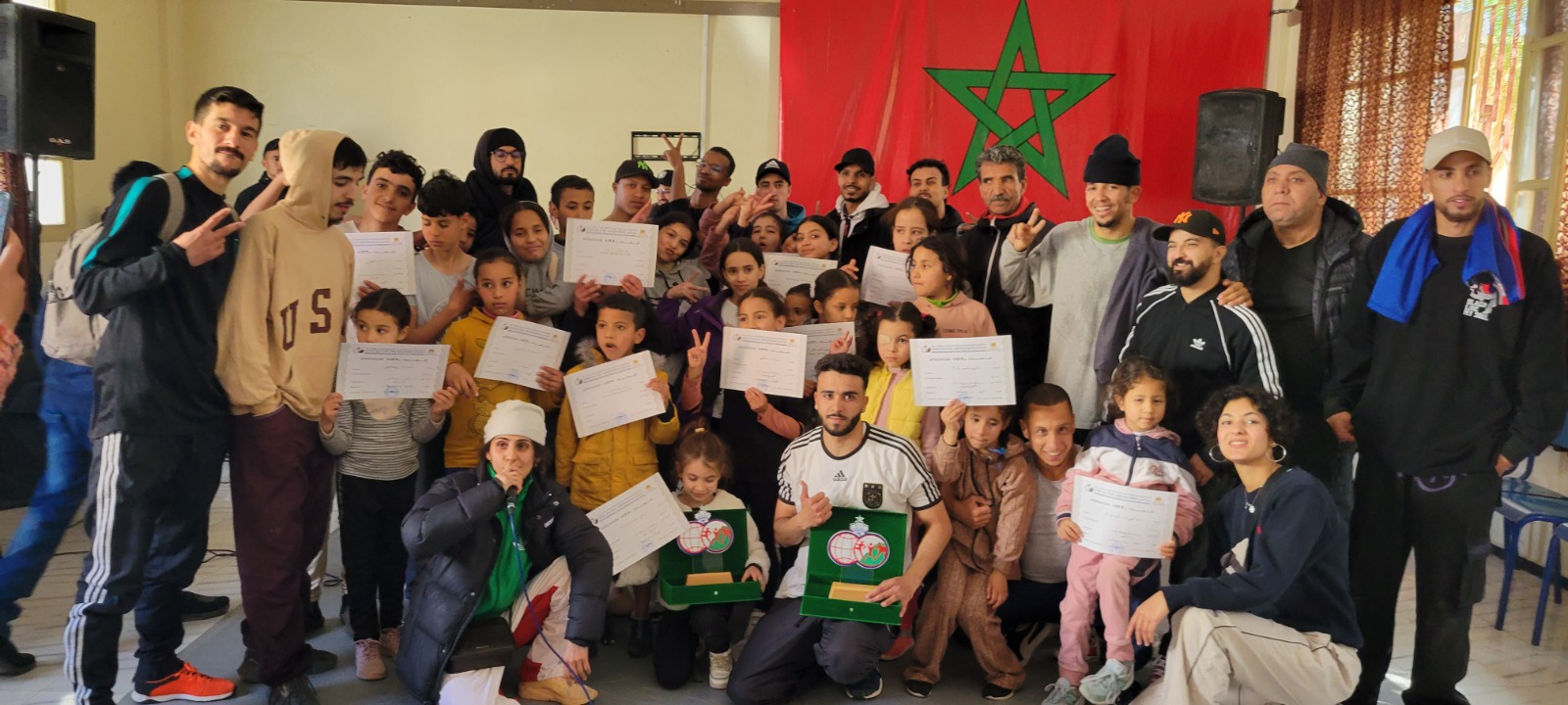 استعدادا للإقصائيات الجهوية في رياضة “بريك دانس” نظم المستشار الجهوي التقني مسابقة في هذه الرياضة الحضرية تحت إشراف الجامعة الملكية المغربية للرياضات الوثيرة الرشاقة البدينة الهيب هوب والاساليب المماثلة ، يوم الأحد 25 فبراير 2024، انطلاقا من الساعة العاشرة والنصف صباحا بقاعة المطالعة بمدينة الريش ، بمشاركة عشرات الممارسين المولوعين بهذه الرياضة الحضرية بكل من مدينة الريش مدينة مكناس ومدينة فاس. تحت إشراف و تأطير المستشار الجهوي والحكم الوطني في رياضة البريكدانس الأستاذ كسوال طارق ولجنة التحكيم من مدينة مكناس والدار البيضاء، بحضور رجال الاعلام والصحافة وعدد من محبي ومتابعي هذه الرياضة. وتهدف هذه االمسابقة التي تنظم، تحت إشراف الجامعة الملكية المغربية للرياضات الوثيرية الرشاقة البدنية الهيب هوب والأساليب المماثلة، إلى نشر ثقافة الهيب هوب والبريكدانس بين الشباب، باعتبارها من الرياضات الحضرية الحديثة. وفي آخر هذا الحدث الرياضي تم تتويج الفائز في هذه المسابقة زكرياء ريطب و البطلة الصغيرة اريج حمزاوي من جمعية أبطال السلام لرشاقة الأجسام بمدينة الريش من طرف المنظمين و المدربين والحكام عربونا على الوفاء المتبادل بين الطرفين واعترفا بنجاح المسابقة وتحقيقها للأهداف المتوخاة منها.