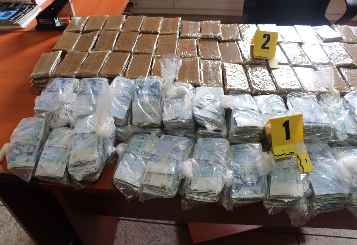 وقد أسفرت عملية الضبط والتفتيش المنجزة في إطار هذه القضية عن حجز طن و55 كيلوغراما من مخدر الكيف و 260 كيلوغراما من التبغ المهرب، فضلا عن 38 كيلوغراما من مخدر الشيرا ومبلغ مالي قدره 120 مليون سنتيم، يشتبه في كونه من متحصلات هذا النشاط الإجرامي.
