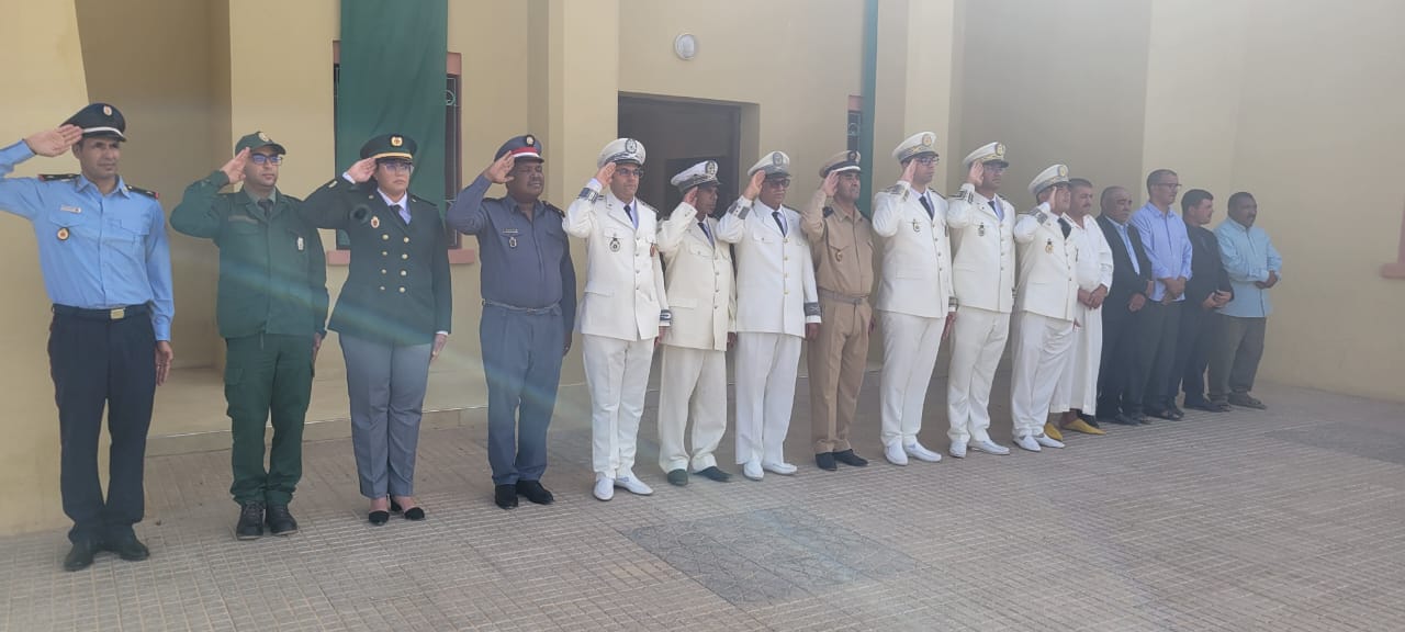 ترأس السيد رئيس دائرة الريش بالنيابة صباح اليوم الثلاثاء 30 يوليوز 2024 بمناسبة الذكرى الخامسة والعشرين لاعتلاء جلالة الملك محمد السادس نصره الله وأيده على عرش أسلافه المنعمين ، مراسيم تحية العلم الوطني، بساحة مقر قيادة سيدي عياد، حيث شهدت مراسيم تحية العالم الوطني بهذه المناسبة المجيدة استعراضا لفرقة تابعة للقوات المساعدة بساحة القيادة .