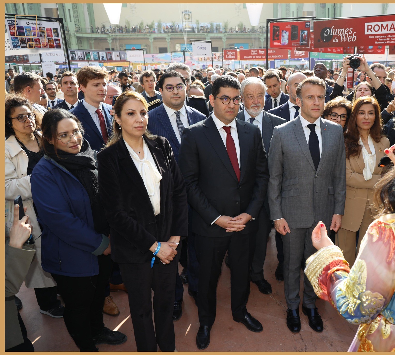 وبعد تحية العلم على نغمات النشيدين الوطنيين للبلدين، اللذين أدتهما المطربة المغربية نبيلة معان، زار السيد ماكرون مختلف أركان الجناح المغربي، الذي صُمم ليكون فضاء غامرا يحتفي بثراء وتنوع الكتاب المغاربة.