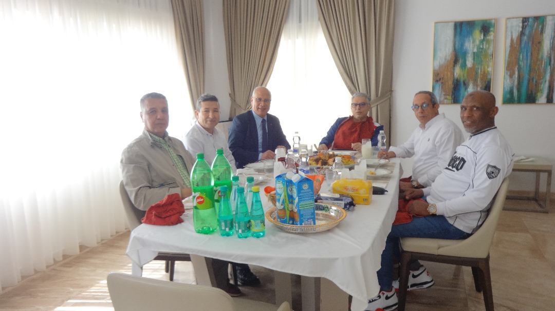 أقام السيد القنصل العام للمملكة المغربية في طرابلس مأدبة غداء على شرف الوفد المغربي المشارك في البطولة الإفريقية للمواي طاي، المُقامة حالياً في العاصمة الليبية طرابلس. وقد حضر هذه المأدبة كل من السيد رئيس البعثة والأمين العام للجامعة، بوشعيب ساقون، والسيد مصطفى غنام، رئيس عصبة الشمال ورئيس لجنة الحكام بإفريقيا، إضافة إلى السيد عسو، مدرب المنتخب المغربي للمواي طاي والسيد مولاي عبد العزيز الشلح ممثل المنظمة بليبيا.