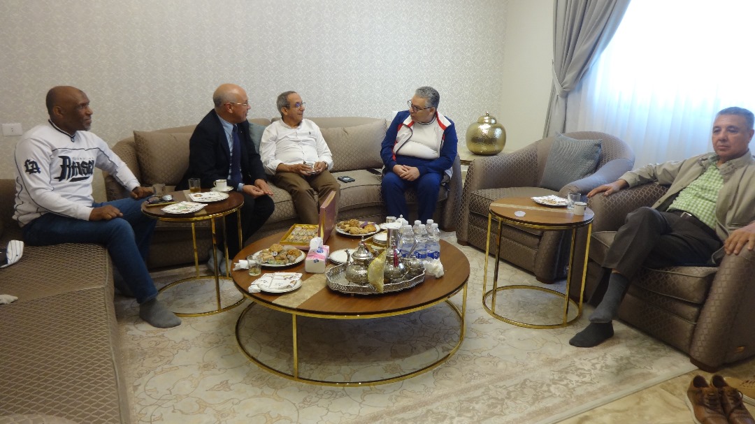 كما لم يفت الوفد الفرصة للإشادة والافتخار بالخطوات المولوية السامية لقائد البلاد الملك محمد السادس في ميادين التنمية البشرية والإصلاح العميق بالمملكة وعناية جلالته الكبيرة بجميع الرياضات وسياسته الرشيدة في التعاون والشراكة مع دول الجوار اقتصاديا واجتماعيا وثقافيا .