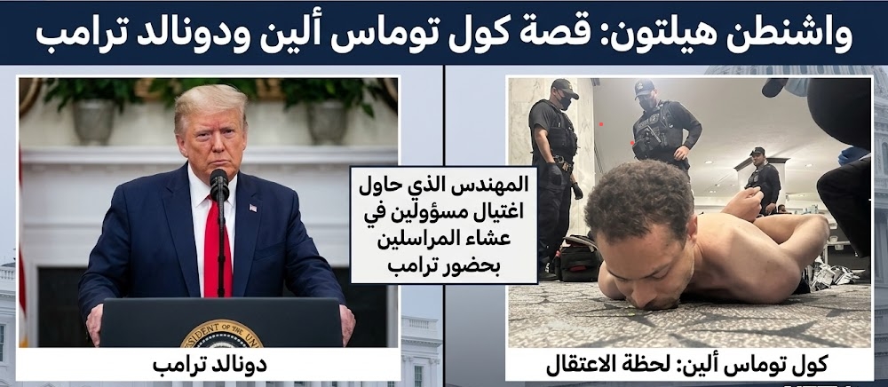 بينما كانت أضواء واشنطن تسلط على مأدبة عشاء مراسلي البيت الأبيض، كان خلف الكواليس شاب يكسر كل الصور النمطية للجريمة. كول توماس ألين؛ المهندس المتفوق والمدرس المثالي، الذي استبدل أقلام الهندسة برصاصات الغدر. في هذا التحقيق، تغوص ‘أصداء مغربية’ في رحلة السقوط الحر من منصات التخرج إلى قيود الأصفاد، لنكشف كيف تحول ‘عقل ذكي’ إلى ‘ذئب منفرد’ هزّ أركان الأمن الأمريكي في ليلة لم تكن تشبه سابقاتها.” في ظل تضارب الأنباء حول وقوع “اختراق أمني للبيت الأبيض”، تضع صحيفة “أصداء مغربية” بين يدي قرائها التفاصيل الدقيقة والموثقة لما حدث في العاصمة الأمريكية واشنطن مساء السبت 25 أبريل 2026. سياق الحادث: أين وقع الهجوم؟ خلافاً لما تم تداوله في بعض المنصات، لم يقع الحادث داخل أسوار “البيت الأبيض” (المقر الرسمي للرئاسة)، بل وقع في فندق “واشنطن هيلتون”، الذي كان يستضيف حفل عشاء مراسلي البيت الأبيض السنوي. وهو حدث اجتماعي وسياسي ضخم يجمع الرئيس وكبار المسؤولين مع الجسم الصحفي.