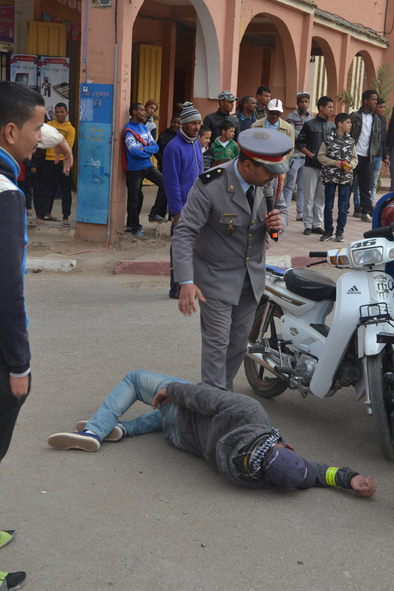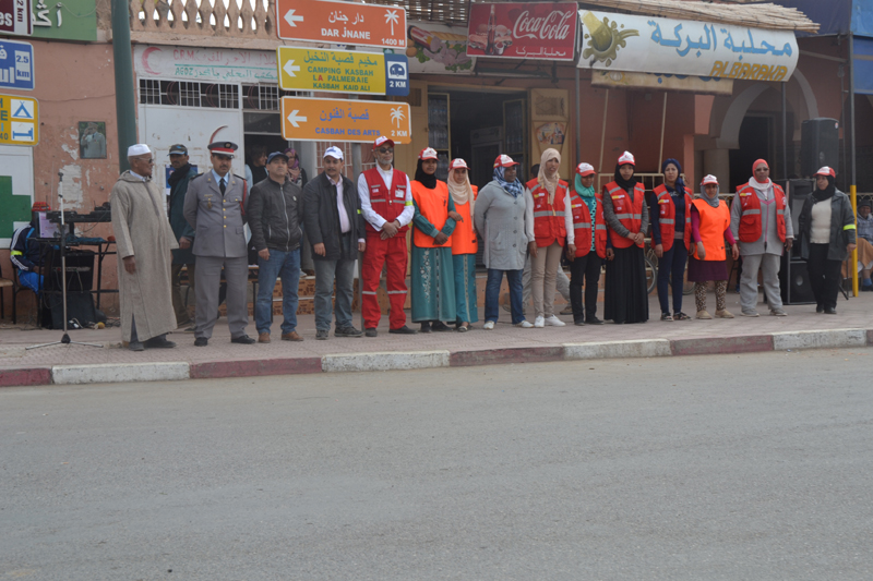 بحضور رسمي لرجال الأمن في شخص السيد عبد الخالق نعومي قائد مركز الدرك الملكي، و السيد محمد عاطل نائبا عن باشا المدينة، و كل من محمد بونوا شيخ المنطقة الحضرية و الحاج عبد الله بواحي شيخ المنطقة القروية و السيد زكار ابراهيم عن القوات المساعدة. و مشاركة السيد عبد اللطيف بوالسكر مدير شؤون السلامة و الانقاذ بالمرصد الدولي للاعلام و الدبلوماسية الموازية. بالتحية الرسمية للعلم الوطني انطلقت قافلة برنامج التحسيس و التوعية بالسلامة الطريقية .