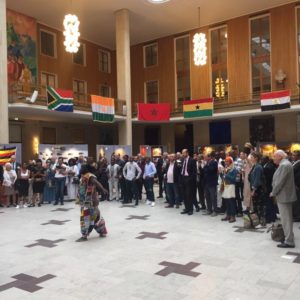 وكان لسفيرة المملكة المغربية خديجة الرويسي ديناميكية خاصة انطلاقا من تنظيم رواق مغربي رفع على واجهته العلم الوطني اما نوعية الاكل المغربي فقد جلب زوار كثر كما كان لسعادتها حوارات مطولة مع شخصيات مختلفة منها الوزيرة المكلفة بالمساوات والعلاقات مع الدول الإسكندنافية وكذلك مع مجموعة من سفراء الدول الافريقية الى جانب ابناء الجالية الدين حظروا هدا الحفل المتميز .