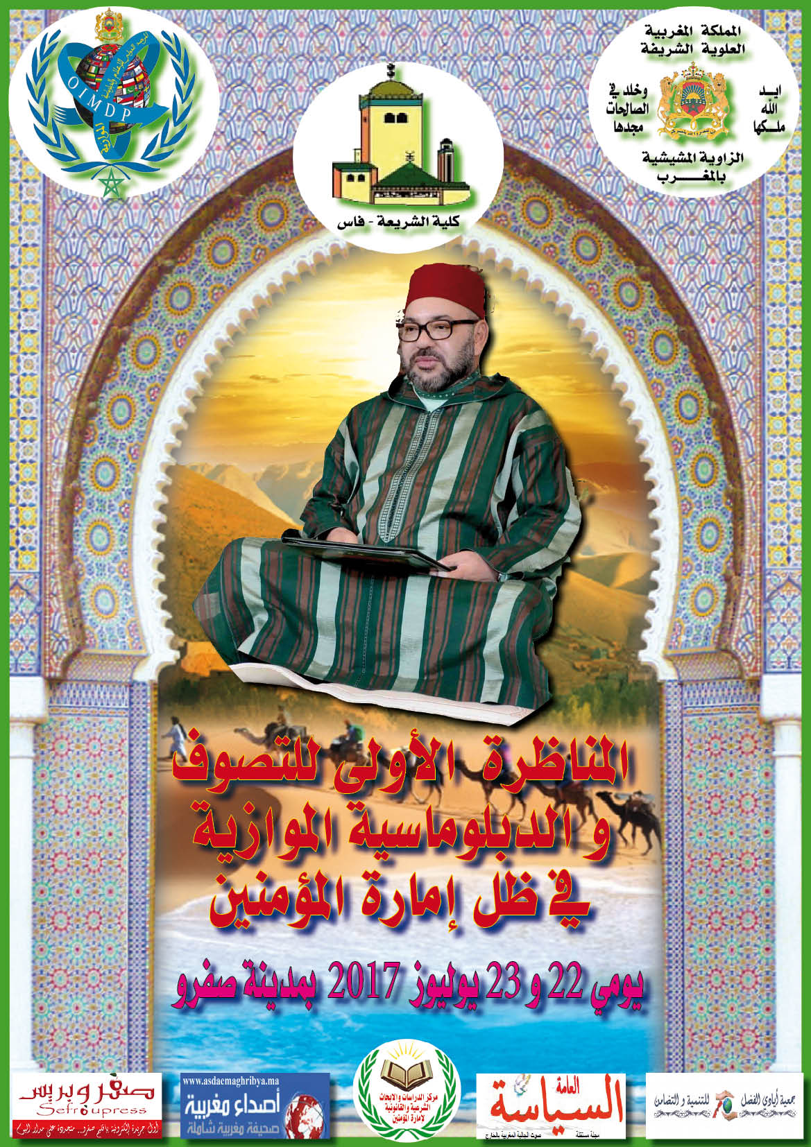 تنظم الزاوية المشيشية بصفرو، والمرصد الدولي للاعلام و الدبلوماسية الموازية بتعاون مع كلية الشريعة بفاس، ” المناظرة الأولى للتصوف و الدبلوماسية الموازية في ظل إمارة المؤمنين”، بحضور مشايخ الطريقة التيجانية الموريتانية كضيف شرف.