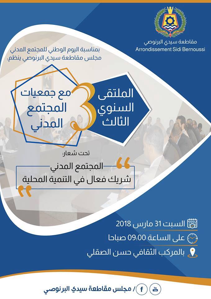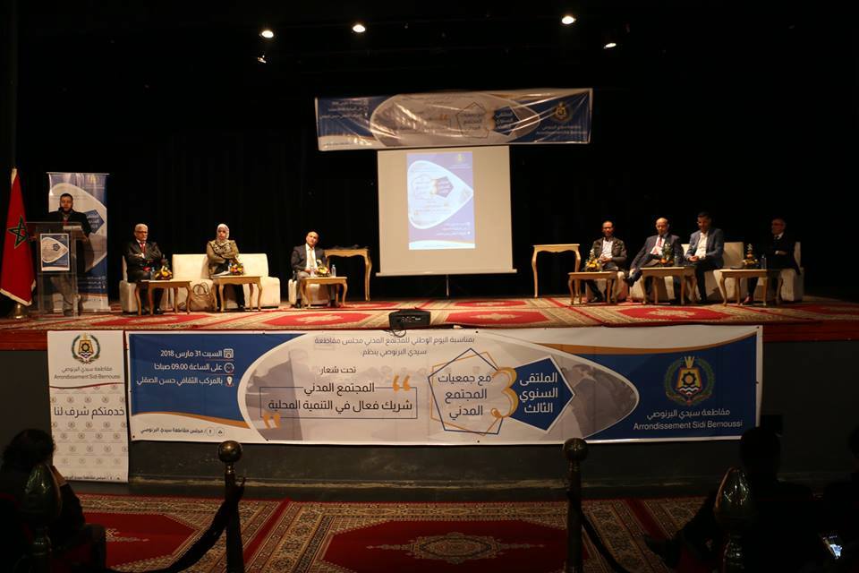 تحت شعار : المجتمع المدني شريك فعال في التنمية المحلية إحتضن المركب الثقافي حسن الصقلي بسيدي البرنوصي، يوم السبت 31 مارس 2018 الملتقى السنوي الثالث لجمعيات المجتمع المدني ، المنظم من لدن مجلس مقاطعة سيدي البرنوصي .