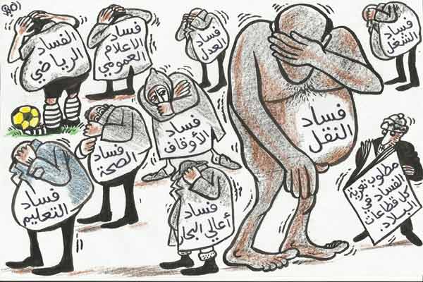 في المقابل تسعى شردمة الفاسدين الى تسمين ارصدتها و تعليف حاشيتها و ابنائها من أجل الخلود على عرش فسادها و استغلالها و تغلغلها في مفاصل الدولة بالباطل سواء بالريع او بنهب جيوب المواطنين بمباركة نظام الاصلاح و تحرير السوق و رفع الدعم و التخلي عن المواطن أمام الأزمات بدون حماية و من غير مراقبة و لا محاسبة بل بتواطئ مع السياسيين الحاكمين و المحكومين.