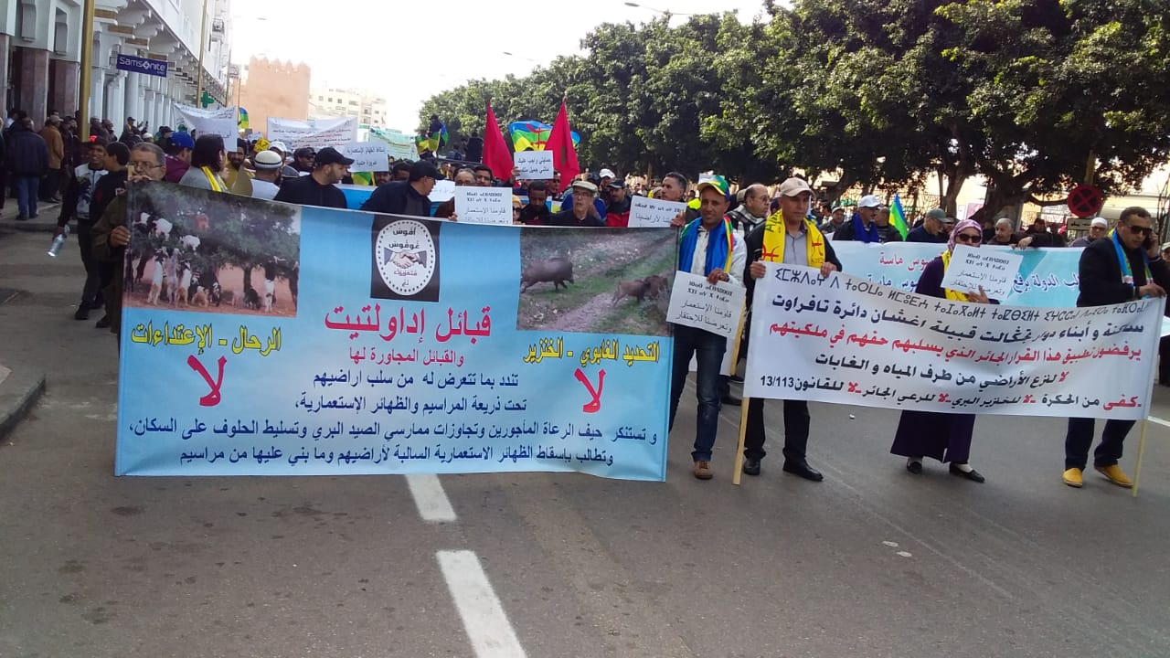ورفع المتظاهرين ، شعارات تطالب بحق الساكنة في الأرض والثروة، وبإرجاع الأراضي التي تمت انتزاعها منهم، وإسقاط الظهائر الاستعمارية، ووقف تنفيذ قانون الرعي الجائر”.