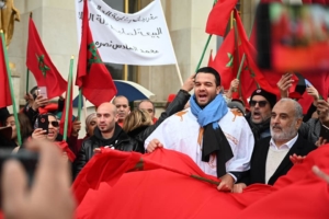 و ردد المتظاهرون ، الذين كانوا يحملون العلم الوطني، بقوة و بصوت عال ، تشبثهم بمغربيتهم و أيضا برموز المملكة وشعارها الخالد ” الله ،الوطن ، الملك”.