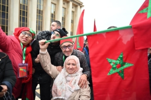 مغاربة العالم يحتفلون بالعلم المغربي امام برج إفيل بباريس