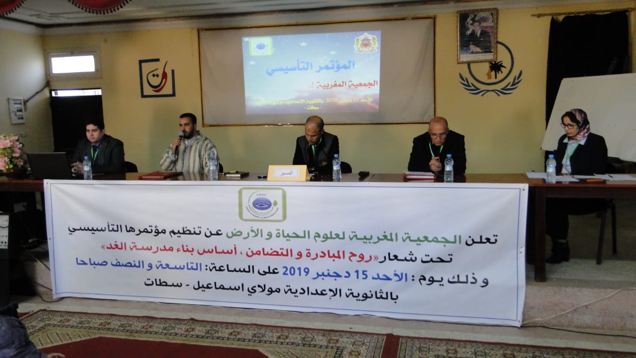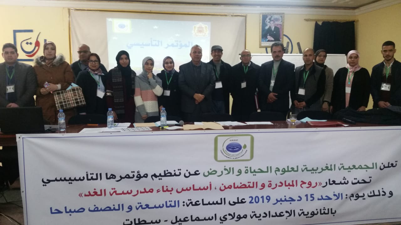 تم انعقاد المؤتمر التأسيسي للجمعية المغربية لعلوم الحياة والأرض يومه الأحد 15 دجنبر 2019 في رحاب الثانوية الإعدادية مولاي إسماعيل بسطات على الساعة التاسعة والنصف صباحا تحث شعار ” روح المبادرة والتضامن أساس بناء مدرسة الغد “