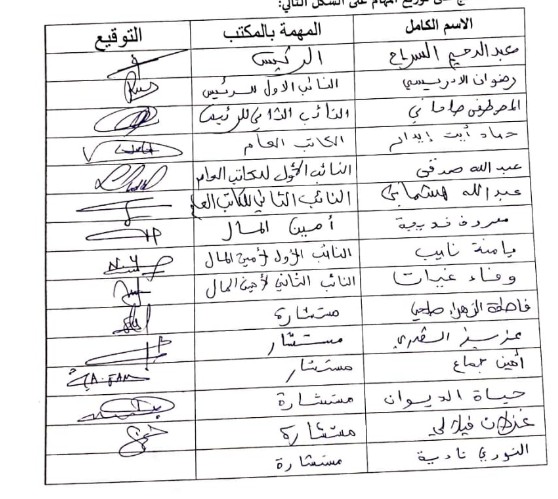 وبعد فتح باب الترشيحات لعضوية المكتب، جاءت التشكيلة كالتالي: