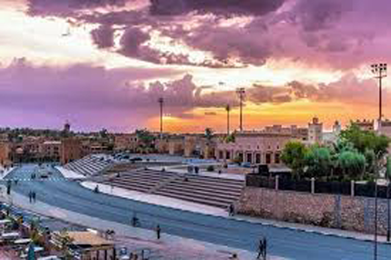 المدينة تمتاز بمناخ صحراوي جاف بمعنى أنها لا تشهد تساقط أمطار فعلى على أراضيها لذلك ننصحك عزيزي القارئ أن قررت الذهاب إلى هناك أن تختار فصل الربيع لزيارتها عندما تكون الشمس غير حارقة و المناخ فى أحسن حالته.