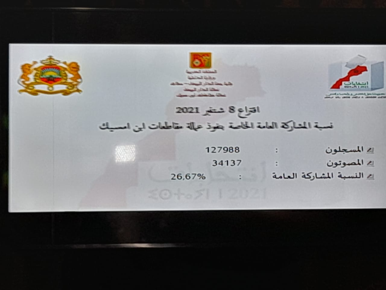 وبدائرة ابن امسيك بلغت نسبة المشاركة في الانتخابات العامة (التشريعية والجماعية والجهوية) 26,67 في المئة.