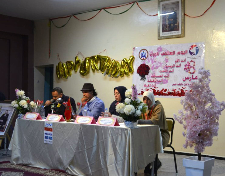 نظمت التنسيقية الجهوية درعة تافيلالت للمنظمة الدولية للدبلوماسية الموازية والإعلام و التسامح حفلا بمناسبة اليوم العالمي للمرأة وذلك يوم 12/03/2022 بدار الشباب لمدينة الريش حيث افتتح الحفل بآيات عطرة من الذكر الحكيم ليقف الجميع بعد ذلك لأداء تحية النشيد الوطني , بعد ذلك أعطيت الكلمة للسيدة: سعاد أومري رئيسة جمعية التضامن النسوي للتنمية الاجتماعية و الاقتصادية بالريش والتي أبرزت مظاهر تكريم الإسلام للمرأة منذ القديم حيث كرم الله المرأة من السماء قبل أن يكرمها البشر على الأرض معززة مداخلتها بآيات من القرآن الكريم و أحاديث نبوية من الهدي النبوي .