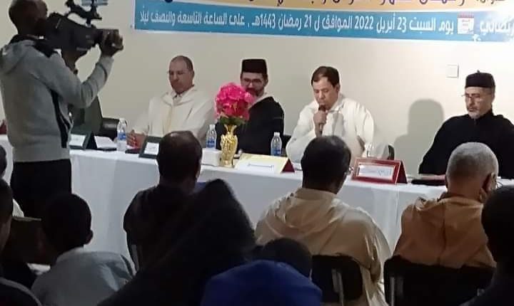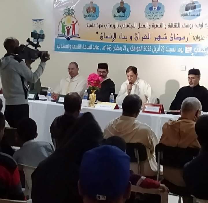 نظمت جمعية أولاد يوسف للثقافة والتنمية والعمل الاجتماعي بالريصاني يوم السبت23 أبريل2022 الموافق ل21رمضان1443ه ابتداء من الساعة العاشرة ليلا.بمقر الجمعية. ندوة علمية في موضوع: “رمضان شهر القرآن وبناء الإنسان” أطره كل من السادة الأساتذة الكرام:د.محمد امراني علوي بمداخلة موسومة بمركزية المسجد في البناء الحضاري للأمة الإسلامية:مساجد قصور تافيلالت نموذجا.ود.الحبيب عيادي بمداخلة:دورالصيام وقراءة القرآن في تمتين الجانب الروحي للإنسان.ود .محمد الحفظاوي بمداخلة:الهدي النبوي القرآني في رمضان.و.د .ادريس مولودي ومداخلته: رمضان وتجديد الصلة بالقرآن وبتنسيق وتسييرذ.عبدالفتاح مالكي نائب الرئيس.