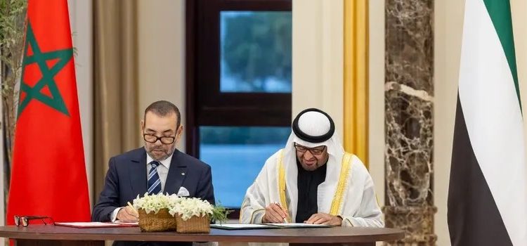 جلالة الملك ورئيس دولة الإمارات العربية المتحدة يوقعان بأبوظبي إعلان “نحو شراكة مبتكرة ومتجددة وراسخة بين المملكة المغربية ودولة الإمارات العربية المتحدة”