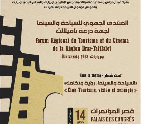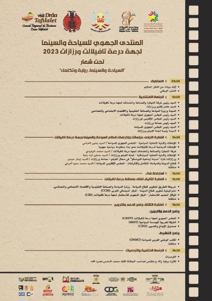 تنظم غرفة التجارة والصناعة والخدمات لجهة درعة تافيلالت بالتعاون مع مجموعة من الشركاء النسخة الأولى من المنتدى الجهوي حول السياحة والسينما تحت عنوان “القطاع السياحي والسينمائي، رؤية وتكامل”.