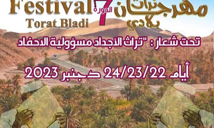 تحتضن جمعية أجيال درعة لإحياء الموروث المحلي و التنمية بنسيق مع جمعية واحة درعة للثقافة والتنمية المستدامة و بدعم من وزارة الشباب و الثقافة والتواصل، و المجلس الإقليمي بزاكورة، و المجلس الجماعي بتاكونيت، الدورة السابعة “للمهرجان الدولي تراث بلادي” بتاكونيت تحت شعار: ” تراث الأجداد مسؤولية الاحفاد أيام: 22 / 23 /24 دجنبر 2023 بجماعة بتاكونيت عمالة و إقليم زاكورة. و يتضمن المهرجان تراث بلادي كعاته أنشطة متنوعة وفق البرنامج التالي: – سيفتتح هذا المهرجان بكرنفال فولكلوري بمشاركة عدة فرق فلكلورية للمنطقة – ندوات حول تراث المنطقة. – زيارة المعرض الاليات الحديثة و القديمة بالمنطقة. – صبحيات للاطفال. – سهرات فنية ستعرف مشاركة فرق موسيقية محلية و جهوية ووطنية .