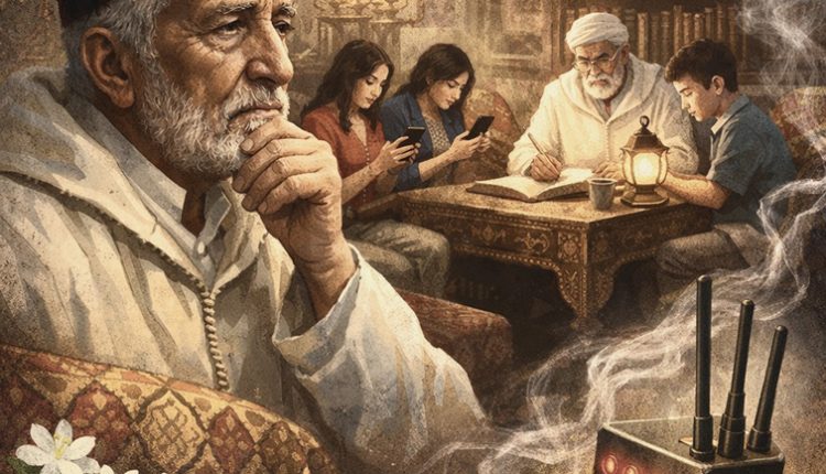 في قلبِ صالونٍ مغربيٍّ عتيقٍ بمدينة الرباط، حيثُ تعبقُ الجدرانُ برائحةِ العود الممزوجةِ بذكرياتِ عقودٍ من الزمن، كان الصمتُ ينسجُ خيوطَهُ بطريقةٍ لم يسبق للحاج إدريس أن عهدها. لم يكن ذلك الصمتُ الشفيفُ الذي يسبقُ آذانَ الفجر، ولا صمتَ الخشوعِ الذي يلي تلاوةَ وردٍ من القرآن، بل كان صمتاً تقنياً مريراً، صمتاً مغلّفاً بطنينٍ خفيٍّ تنبعثُ منه ذبذباتٌ باردة، تخترق الأرواح قبل الأجساد. كان الحاج إدريس، ذلك الشيخ السبعيني الذي أفنى عمره معلماً للأجيال ومنقباً في كنوز الأدب، يجلسُ في ركنه المعتاد فوق أرائك مغطاة بـ “الطرز الرباطي” المذهب، يراقبُ عائلته بنظراتٍ تمزجُ بين الأسى العميق والتحليل الفلسفي الثاقب. كان يرى في هذا المشهد تجسيداً حياً للقطيعة في زمن الاتصال المطلق، وكأنَّ تلك الأجهزة الصغيرة التي تسكنُ قبضاتِهم قد تحولت إلى ثقوبٍ سوداء تبتلعُ حضورهم الإنساني وتتركُ وراءها أجساداً بلا هوية. أمامه، كانت للا عائشة، رفيقةُ دربه وسكينةُ عمره، تغرقُ في شاشةِ هاتفِها ببراعةٍ تثيرُ عجبه، تلاحقُ صوراً متسارعة لأحفادٍ باعدت بينهم وبينها القارات، فتارةً تبتسمُ لشاشةٍ صماء، وتارةً تمسحُ دمعةً سقطت فوق زجاجٍ بارد لا يشعر بها. وعلى الأريكة المقابلة، كان ابنهما ياسين وزوجته يجلسان كتمثالين من رخام، لا يحركهما إلا وميضٌ أزرق ينعكسُ على الوجوه، فيجمدُ ملامحهما البشرية الدافئة ويحولها إلى أقنعةٍ ضوئية باهتة. لم تكن هناك حوارات، بل كانت هناك نقرات خفيفة، وصرخاتٌ صامتة تخرجُ من الأصابع لتستقر في فضاءات الإنترنت الشاسعة، تاركةً الغرفةَ الحقيقية في حالةٍ من اليتم الإنساني. تذكر الحاج إدريس بأسى كيف كان هذا الصالون يضجُّ يوماً بضحكاتٍ لا تحتاج إلى رموز تعبيرية لتوثيقها، وبنقاشاتٍ كانت تسيلُ كالعسل بين الحاضرين، أما اليوم، فقد صار لكل فردٍ صومعته الرقمية التي لا يدخلها أحدٌ سواه. بدأ الحاج إدريس يسرحُ بفكره في ملكوتِ الماضي، حيثُ كانت الكلمةُ تُعجنُ بالصبر وتُخبزُ بلهفة الانتظار. تذكرَ سنواتِ دراسته الأولى في جامعة القرويين بفاس، حين كان يكتبُ الرسائلَ لوالده في قريته البعيدة. كانت الرسالةُ آنذاك طقساً مقدساً؛ يبدأ باختيارِ نوعِ الورق بعناية فائقة، ثم ببريِ القصبةِ بمبراةٍ ورثها عن جده، وصناعةِ المدادِ من صمغِ الشجر الممزوج بالزعفران والحبر القاتم. كان يكتبُ الكلماتِ وهو يتخيلُ ملامحَ والده وهو يقرؤها، فكان يضعُ في كل حرفٍ نبضةً من قلبه. يتذكرُ حين كان يضعُ زهرةَ ياسمين أو غصنَ ريحانٍ بين طياتِ الرسالة، لتصلَ الرائحةُ قبل المعنى، وليلمسَ والده ورقةً امتصت عرقَ يدِ ابنه ونفحاتِ روحه. قارنَ ذلك بهذا الزمان الذي يرسلُ فيه ياسين مئاتِ الرسائل في اليوم، رسائل سريعة كأنها طلقاتُ رصاص، تفتقرُ إلى الجسد، وإلى الرائحة، وإلى ذلك الدفء الذي يجعلُ من الكلمةِ أثراً باقياً لا يزول بضغطةِ زر. كان يتساءل: هل نحن نتواصل حقاً، أم أننا نتبادلُ الأكواد والذبذبات في فراغٍ هائل؟ كانت الساعةُ قد تجاوزت منتصفَ الليل، والرباطُ قد أرخت سدولها على الشوارع، لكن داخل البيت كانت الضوضاء الرقمية في ذروتها رغم السكون المطبق. لم يستطع الحاج إدريس تحمّل هذا المشهد أكثر، شعرَ أن عائلته تُختطفُ منه وهي تجلسُ بجانبه. قام من مكانه بوقارٍ، وتوجه نحو الشرفة المطلة على شارع محمد الخامس. نظر إلى الأبراجِ البعيدة وهي ترسلُ إشاراتِها اللاسلكية في سماء المدينة، وبدت له تلك الإشارات كأنها شباكُ عنكبوتٍ عملاقةٍ اصطادت البشريةَ في غفلةٍ منها. في تلك اللحظة، استرجع الحاج مشهداً من طفولته، حين كان جده يجمعُ العائلة حول المجمر في ليالي الشتاء، ويحكي لهم “خرايف” (قصصاً) عن الأبطال والصالحين. لم يكن لديهم تلفاز ولا هواتف، لكنهم كانوا يملكون القدرة على الدهشة. كان الخيالُ يبني مدناً وقصوراً في عقولهم الصغيرة، أما اليوم، فقد صار الخيالُ مُعلّباً في مقاطع فيديو قصيرة، تُستهلكُ بسرعة البرق وتُنسى في لم