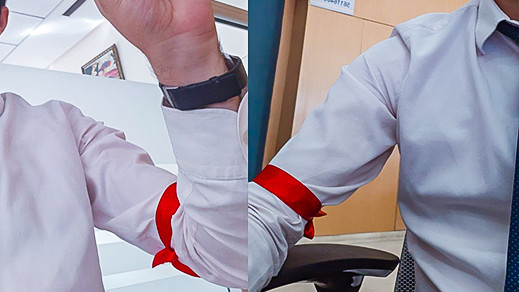 ويعد حمل الشارة شكلا حضاريا ذو رمزية خصوصا خلال الظرف الدقيق الذي يمر من العالم خلال جائحة كورونا، ولسان الحال يقول: أداء الواجب بمسؤولية وعدم التخلى عن حقوقنا المشروعة – تغيير الإطار والترقية-