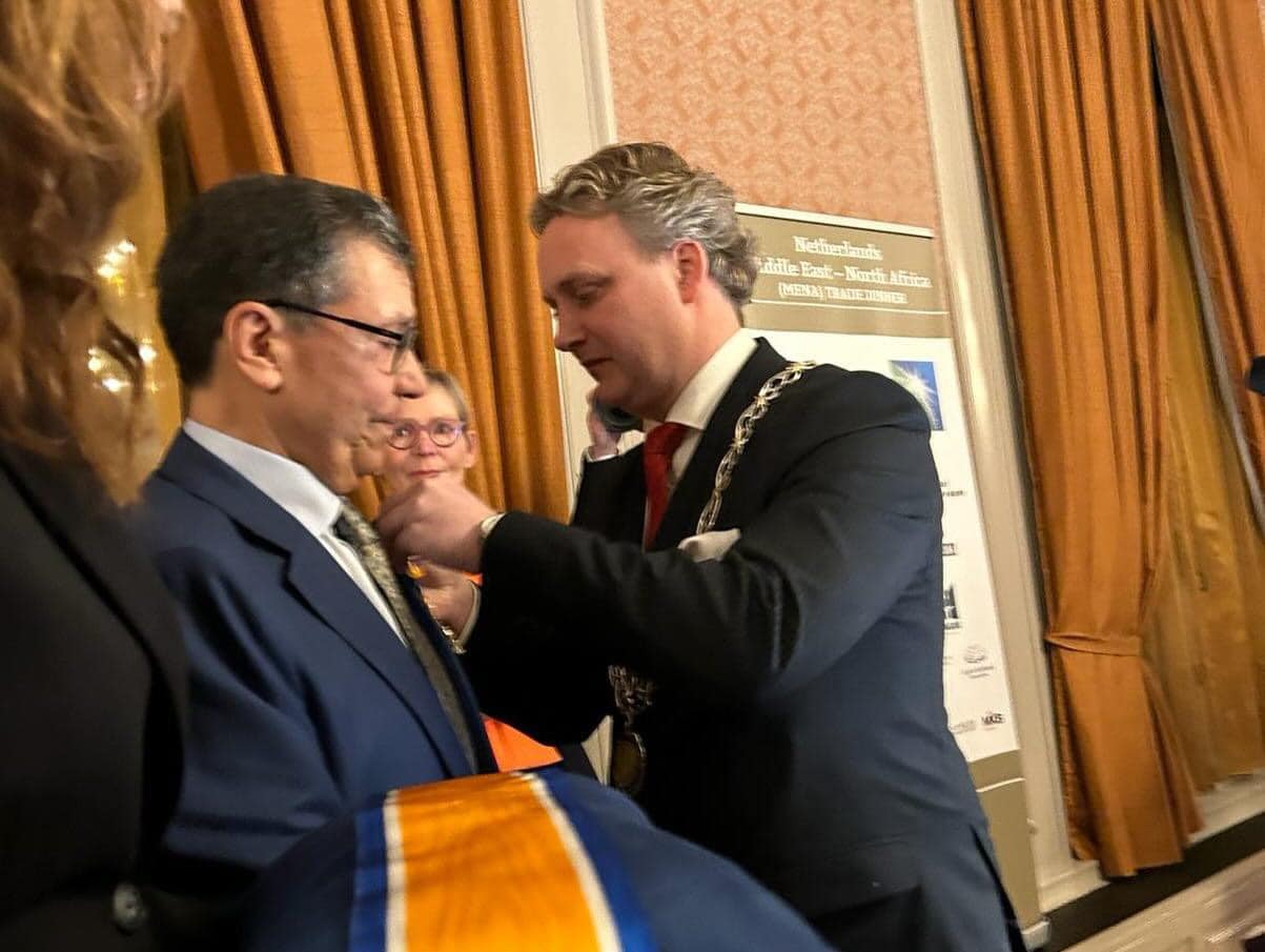 Le 31 janvier dernier, lors du prestigieux dîner annuel du commerce MENA à La Haye, Mohamed Laroussi Tahiri a été élevé au rang d’Officier dans l’Ordre d’Orange-Nassau, une distinction royale néerlandaise. Cette reconnaissance exceptionnelle vient couronner une carrière marquée par un engagement sans faille tant sur la scène locale qu’internationale.